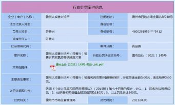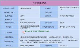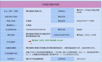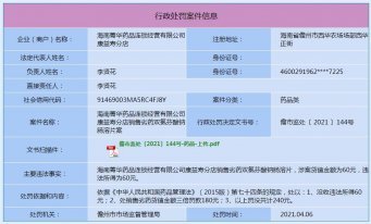 [曝光台] 海南菁华药品连锁经营有限公司康益寿分店行政处罚案件信息 日期:2021-04-19