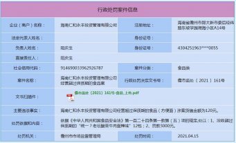 [曝光台] 海南仁和永丰投资管理有限公司行政处罚案件信息 日期:2021-04-19