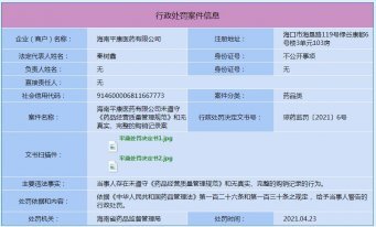 [曝光台] 海南平康医药有限公司行政处罚案件信息 日期:2021-05-06