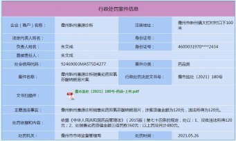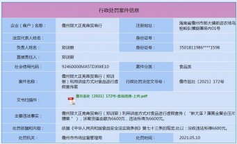 [曝光台] 海南省市场监督管理局行政处罚案件信息 日期:2021-05-21