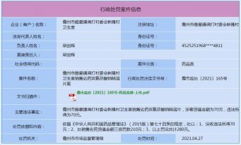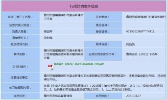[曝光台] 儋州市雅星镇调打村委会新隆村卫生室行政处罚案件信息 日期:2021-05-21