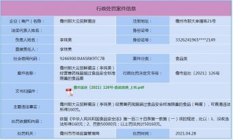 [曝光台] 儋州那大云贸鲜蛋店行政处罚案件信息 日期:2021-05-21