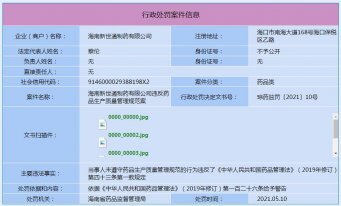 [曝光台] 海南新世通制药有限公司行政处罚案件信息 日期:2021-06-10