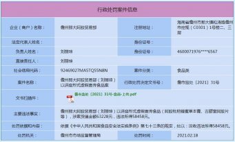 [曝光台] 儋州那大阿胶贸易部行政处罚案件信息 日期:2021-04-16