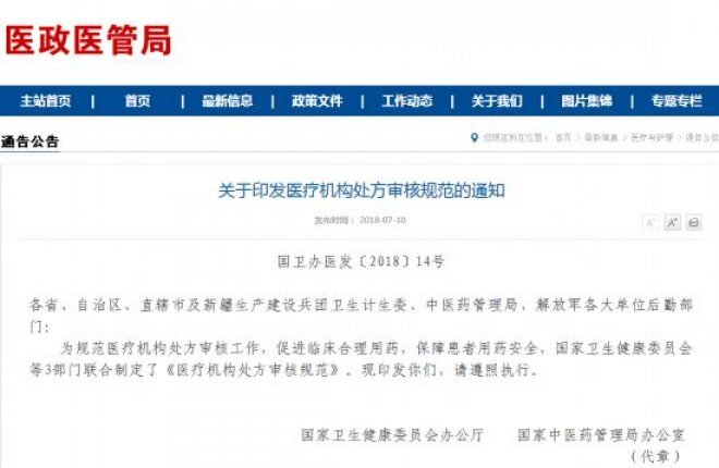 [保健法制] 国家卫健委发布新规药师将审核医生处方! 日期:2018-07-17