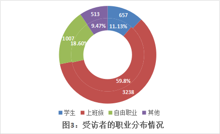 调查结果显示,本次问卷调查的受访者以上班族为主,占比达到59.80%。此外,自由职业者占18.60%,学生占11.13%,其他受访者占9.47%。
