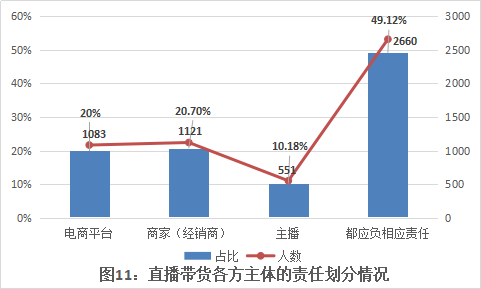 11、近半受访者认为平台、主播和商家应共同承担责任