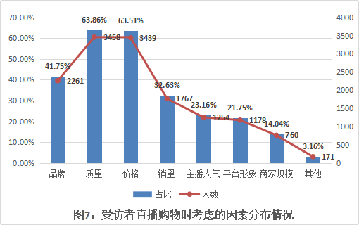 7、质量和价格是受访者直播购物时考虑最多的因素
