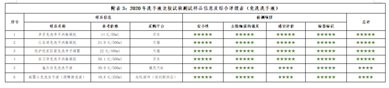2020年洗手液比较试验总评表
