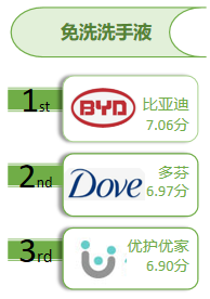30位体验官感官评价结果显示:比亚迪、多芬、优护优家感官综合评价表现突出。