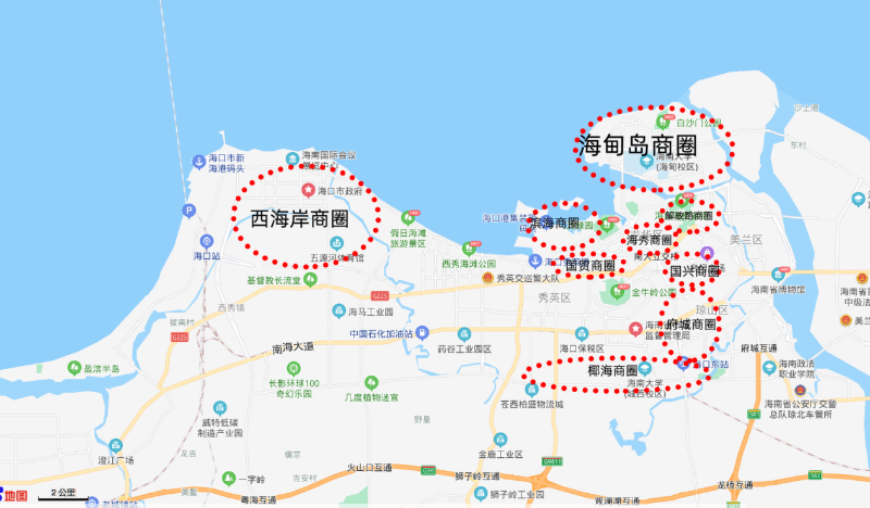 海口主要商圈分布。