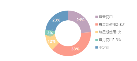 2. 消费者较常使用水彩笔/马克笔,38%的消费者每周使用2-3次。