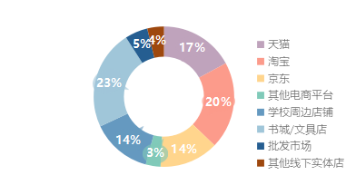 备注:1. 本次比较试验所有样品均由工作人员以普通消费者身份通过正规销售渠道购买;2. 评级结果用“★”表示,“★”越多结果越好,同星级产品排名不分先后;3. 总评“五星”为全部达到本次比较试验设定的更多、更严标准要求,总体表现卓越;“四星”为一项指标未达到本次比较试验设定的更多、更严标准要求,总体表现优秀;“不予评级”为个别指标未达到本次比较试验设定的更多、更严标准,且不符合国家强制性标准要求;4. 本次比较试验中检测出的部分不符合国外标准的相关产品,并不代表该产品不符合国内相关标准;5. 本次比较试验结果仅对所购买的产品负责,结果仅供消费者选购产品参考,不代表同品牌不同批次,不同规格产品的质量状况,不构成对任何相关产品的推荐与宣传;6. 未经江西省消费者权益保护委员会、深圳市消费者委员会、福田区消费者委员会、宝安区消费者委员会书面允许,任何单位和个人不得擅自使用本次比较试验结果作为商业宣传。 一、项目背景 水彩笔和马克笔均为常用的绘画工具,有色彩丰富鲜艳等特点,深受小朋友喜爱。童年时期的孩子有着丰富的想象力,总是喜欢天马行空写写画画。他们画的自己的眼中美好的世界,勾勒充满童真的梦想,目之所及皆需上色,包括家里的墙壁、甚至是身上的皮肤。 水彩笔、马克笔产品近三年质量检测情况均有不合格现象,主要问题集中在邻苯二甲酸酯类等化学安全性方面及笔的上帽安全等物理安全性方面,说明水彩笔、马克笔产品安全性依旧需要消费者重点关注。 2020年5月,江西省消保委、深圳市消委会开展了儿童文具(水彩笔、马克笔)消费情况调查,收集了288份的有效问卷。依据前期发布于“江西放心消费315”、“深圳市消费者委员会”和“品质研究院”的网上问卷调查结果显示: 1.网购是消费者购买水彩笔/马克笔的第一途径,占比高达54%。其次是在书城/文具店购买,占比23%。