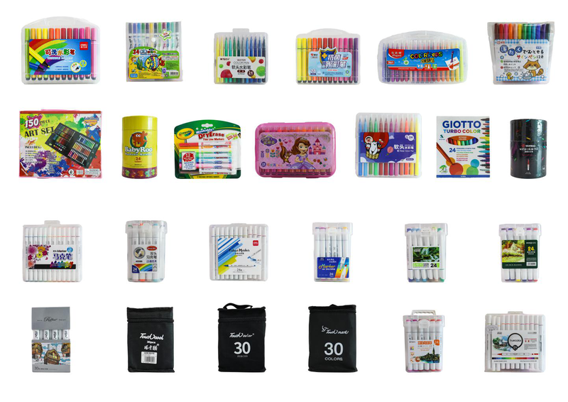 香味浓重的绘画工具是否安全?是否为美丽色彩背后隐藏着健康的“杀手”,会对孩子稚嫩的皮肤产生伤害?消费者应该如何选择安全可靠的绘画文具呢?市场质量情况又是如何? 为进一步了解水彩笔、马克笔产品的质量状况,2020年5月至8月,江西省消费者权益保护委员会联合深圳市消费者委员会、福田区消费者委员会、宝安区消费者委员会对25款市售水彩笔、马克笔开展比较试验,由深圳市品质消费研究院执行,深圳天祥质量技术服务有限公司承检。 二、比较试验详情 一、样品选取及来源 本次比较试验样品选择参考前期消费调查及各大电商平台销售情况中消费者关注度高、销量好的水彩笔、马克笔产品,由工作人员以普通消费者的身份在网络电商平台(天猫、京东、唯品会、考拉海购、拼多多、小米有品、苏宁易购、1号店)、江西南昌线下实体店、深圳线下实体店进行匿名购买。本次25款样品中,13款为水彩笔(涉及品牌为:齐心、Bravokids、晨光、爱好、得力、富乐梦、kubeixiongcorner、美乐、绘儿乐、马培德、迪士尼、樱花、GIOTTO),12款为马克笔(涉及品牌为:宝克、得力、蓝克、晨光、西瓜太郎、掌握、真彩、英雄、塔奇酷、马可、Touchmark、Touchcolor),共涉及23个国内外品牌。