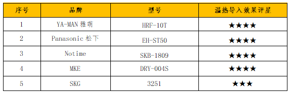 备注:本次主观体验结果仅代表志愿者的体验感受,产品使用效果因人而异,测评结果仅供参考;同星级排名不分先后。 ◆ 温热导入效果 根据网红和产品的广告宣传,温热导入功能能够在敷面膜的时候帮助皮肤更好地吸收水分,本次主观体验加入了此项。首先通过测肤仪对评测人员的测试部位进行含水量测量并记录数据,然后敷上面膜5分钟,分别对使用美容仪样品辅助吸收后的部位和不使用任何工具辅助的部位进行对比,再次用测肤仪测量含水量并记录数据进行打分。
