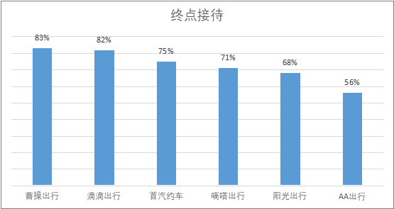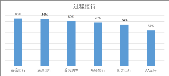 3. 过程接待细分服务得分情况 过程接待达标率最高的是曹操出行,其次是滴滴出行。各大网约车平台在过程接待细项中,“主动让乘客系安全带”、“按照乘客需要进行适当聊天”、“乘客明确拒绝时,仍强行搭讪”、“有不礼貌的言语/用词”、“对乘客动手动脚”和“言语暧昧”这六项指标达标率都为100%。