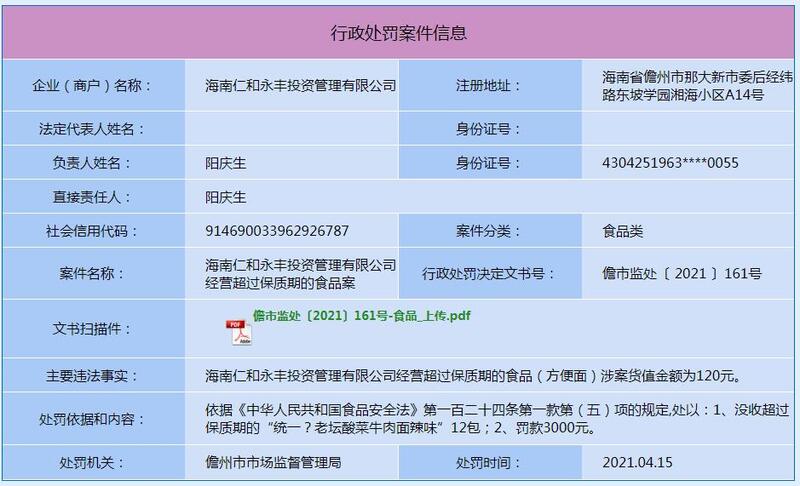 海南仁和永丰投资管理有限公司行政处罚案件信息