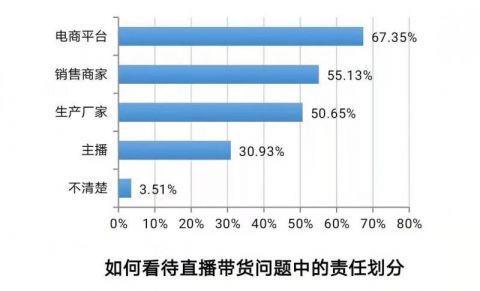 67.35%受访者认为平台应为直播带货问题承担主要责任