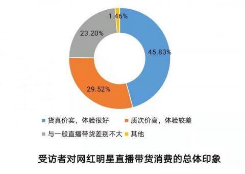 北青-北京头条记者注意到,在有直播带货购物经历的受访者中,有84.07%的人表示有网红明星直播带货的购物经历,没有网红明星直播带货购物经历的人只有15.93%。但遗憾的是,只有45.83%的人对网红明星直播带货的总体印象是“货真价实,体验很好”,有29.52%的人对网红明星直播带货的总体印象是“质次价高,体验较差”,还有23.20%的人认为网红明星直播带货“与一般直播带货差别不大”。这也说明,尽管网红明星带货确实能够带来巨大流量,吸引很多消费者购买,但目前消费者对网红明星直播带货的消费体验和总体印象并不好,需要努力提升。